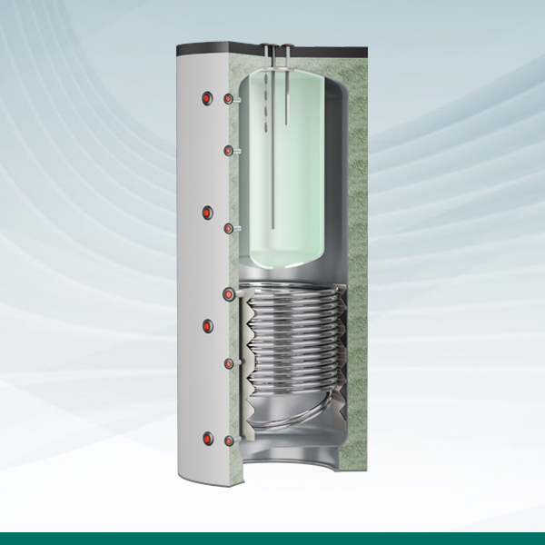 Los depósitos de inercia con producción de agua caliente sanitaria  Suicalsa COMBI 2 se constituyen de un depósito para agua de circuito primario conectado a un circuito de calentamiento (caldera, aerotermia u otra fuente de calor). También incorporan un acumulador interior para agua caliente sanitaria (ACS), construido este último en acero carbono con revestimiento Polywarm. Dispone además de  un serpentín adicional construido en acero carbono como apoyo a la fuente de calor principal, o bien como calentamiento de fluido secundario de otro circuito anexo.