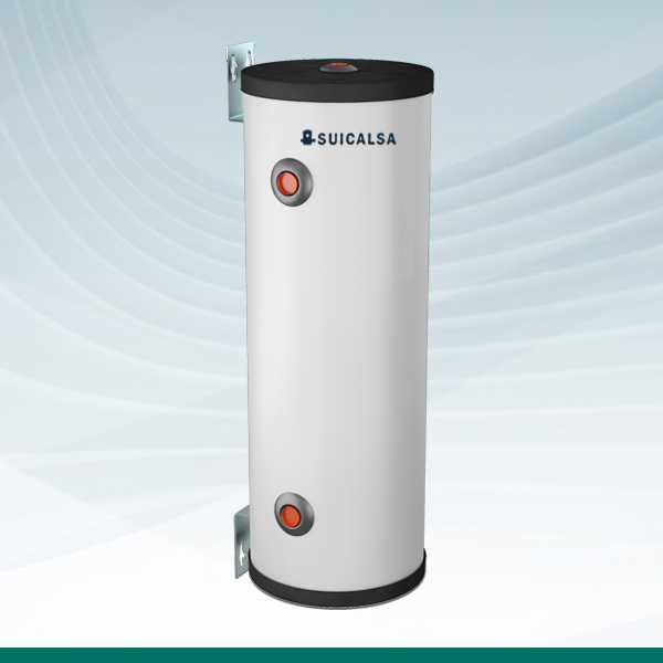 Los depósitos de inercia murales Suicalsa DIM se suministran con aislamiento de poliuretano expandido rígido de conductividad térmica 0,023 W/moK. Terminación exterior en funda de PVC de color gris.